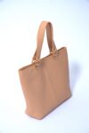 Geanta din piele naturală de dimensiune medie cu doua barete scurte fixate cu inele metalice. Poate completa o ținută office sau casual .
